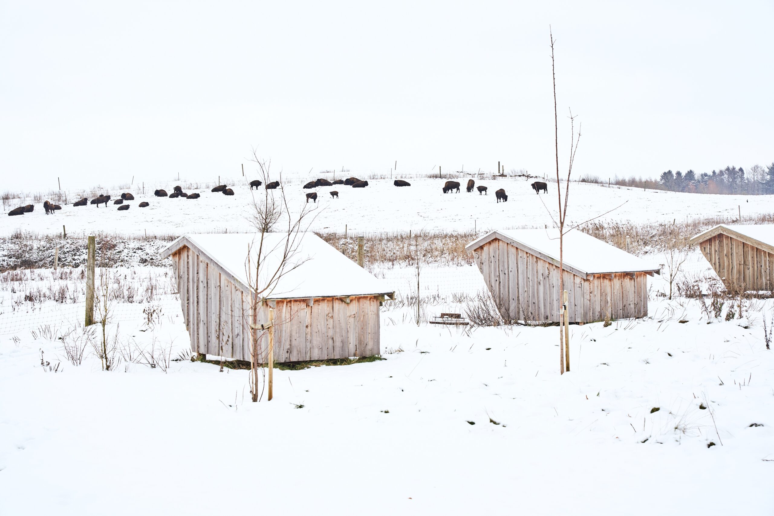 Nyd roen, dyrene og naturen i vores hyggelige shelters, der helt tæt ved bisonindhegningen.
